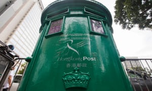 A cast-iron postbox with a British royal cipher in Central district, Hong Kong. Photograph: Alex Hofford/EPA