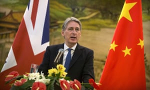 Philip Hammond speaking at a press conference in Beijing at the start of a two-day visit to China. Photograph: Mark Schiefelbein/AP